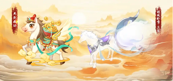 2.完成指定城镇迎春报喜进度可获得马年限定升星坐骑-因风卧雪、小宠物-马到成功,兑换市集可获得称号-马上发财
